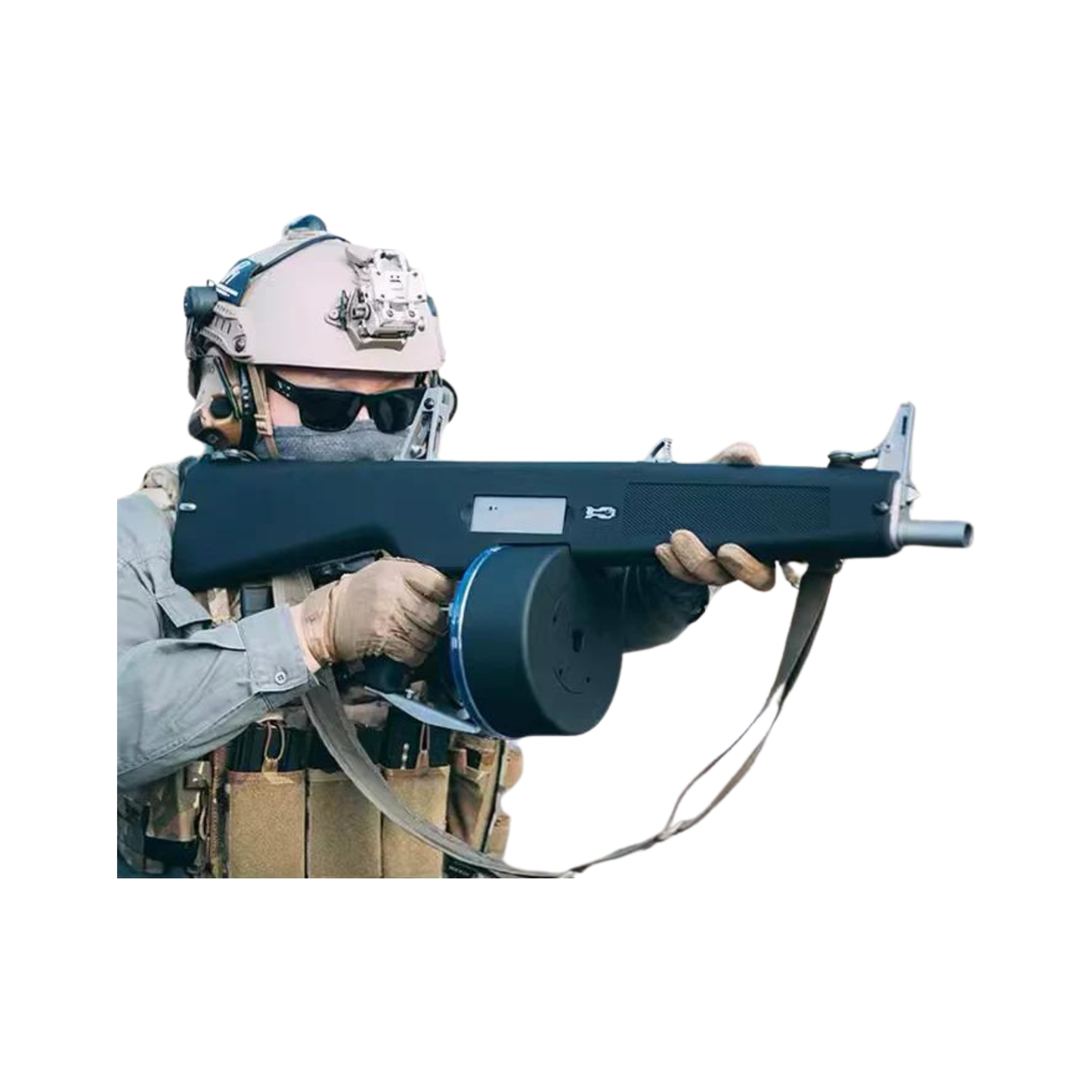 The AA12 Shell Ejecting Shotgun. Available either in Nerf Dart version, or Gel Blaster Version (Please note: the version being sold in this listing is the Nerf Dart Version, not the Gel Blaster Version). This is a truly magnificent, electric blowback device, that uses the battery to recycle the bolt and advance the magazine, while the piston is powered by a decent spring.