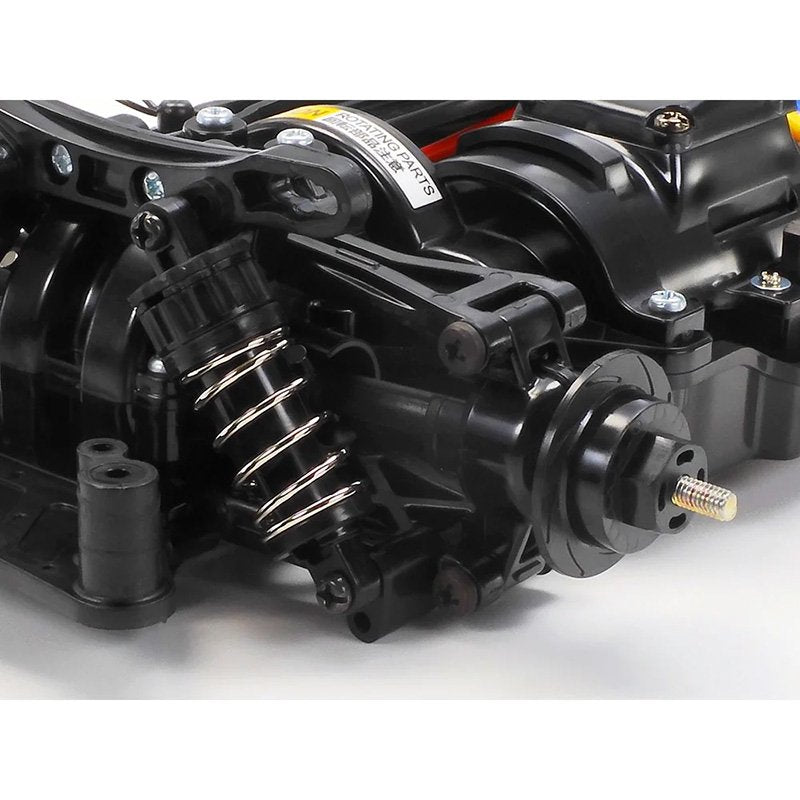 - The 4-wheel double wishbone suspension features symmetrical structure and friction dampers.