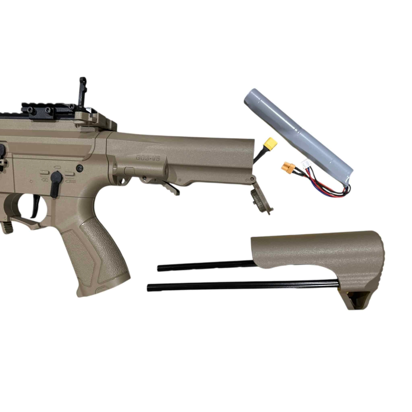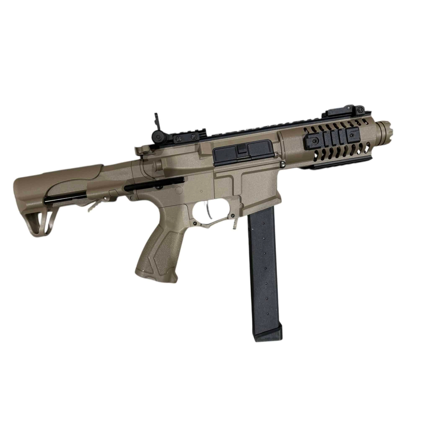The JinMing ARP9 is a premium gel blaster released in December 2025, engineered for serious enthusiasts. This battery-operated automatic features dual firing modes—full-auto and semi-auto—with exceptional build quality throughout. The robust nylon construction from tip to stock combines with an 18:1 gear ratio and 1.2mm spring for reliable performance. Nylon Gears With a 7.4v battery, achieve up to 330 fps and 11 rounds per second; upgrade to 11.1v for up to 20 rounds per second. Both configurations deliver 25m effective range. The package includes everything needed: gel blaster, magazine, rechargeable battery, USB charger, sight, safety glasses, and 2000 gel balls. Precision-engineered 4-sided 20mm rail handguards and metal inner barrel ensure durability and accuracy.