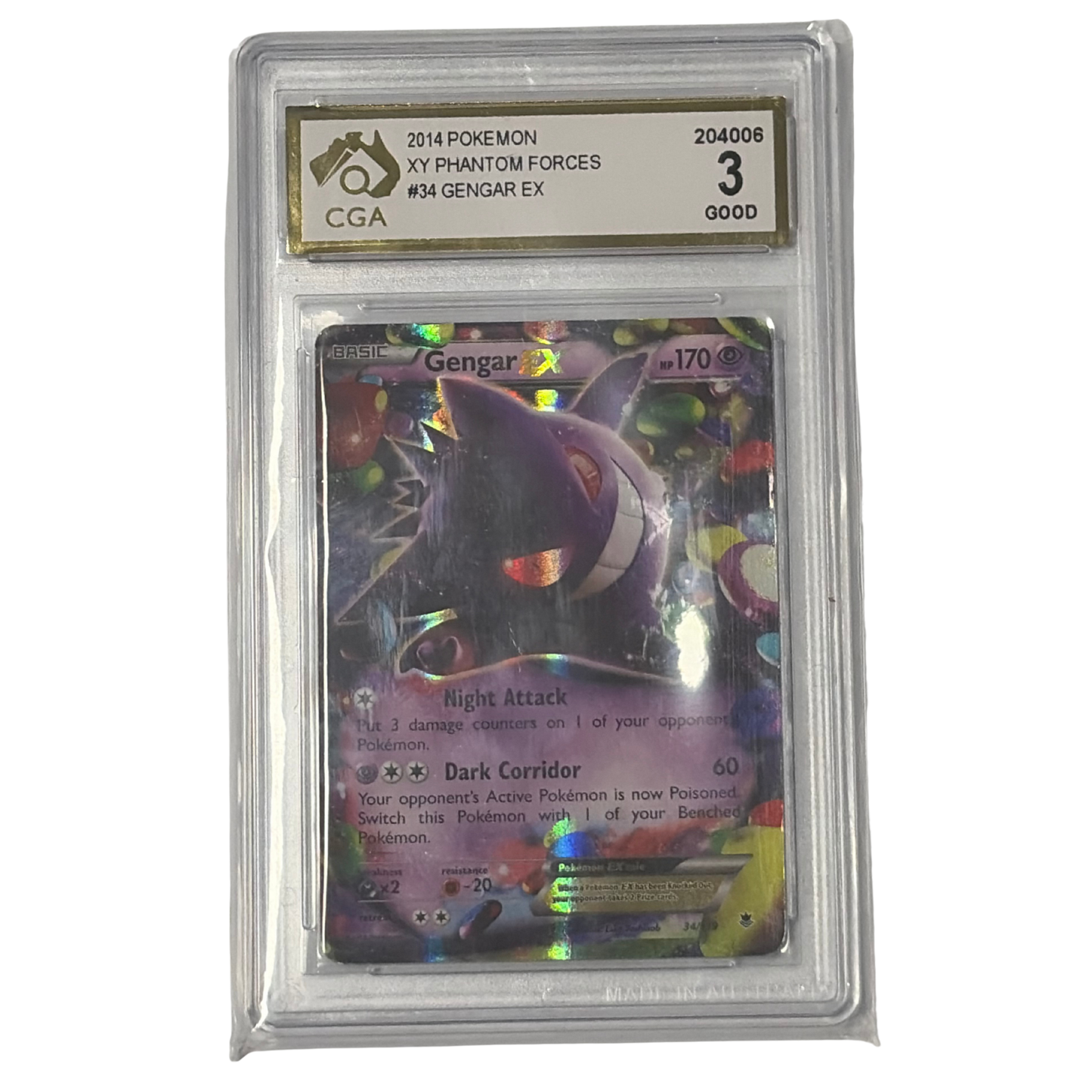CGA Graded Pokemon XY Phantom Forces #34 Gengar EX - Grade 3