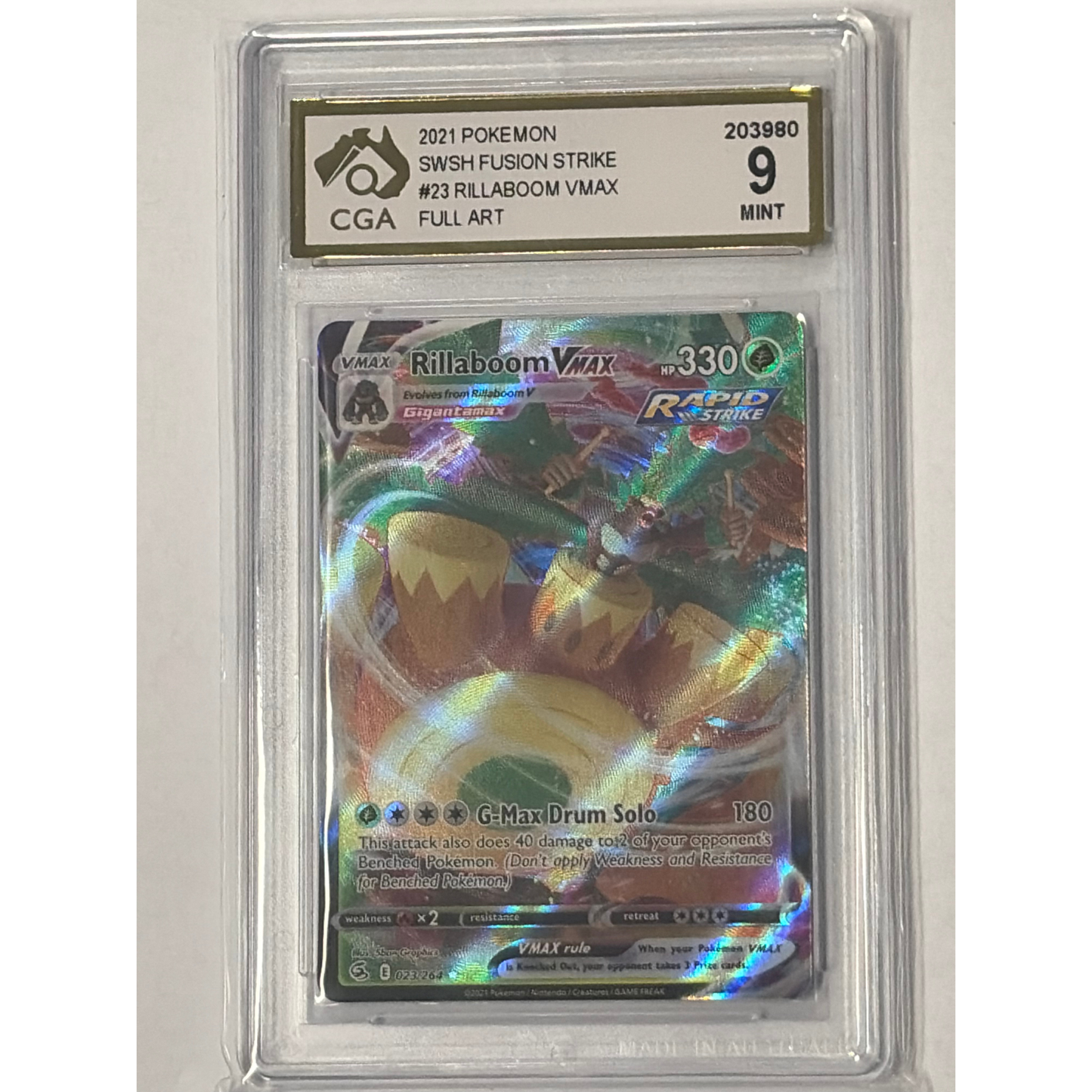 CGA Graded Pokemon Sword & Shield: Fusion Strike #23 Rillaboom VMAX - Graded 9