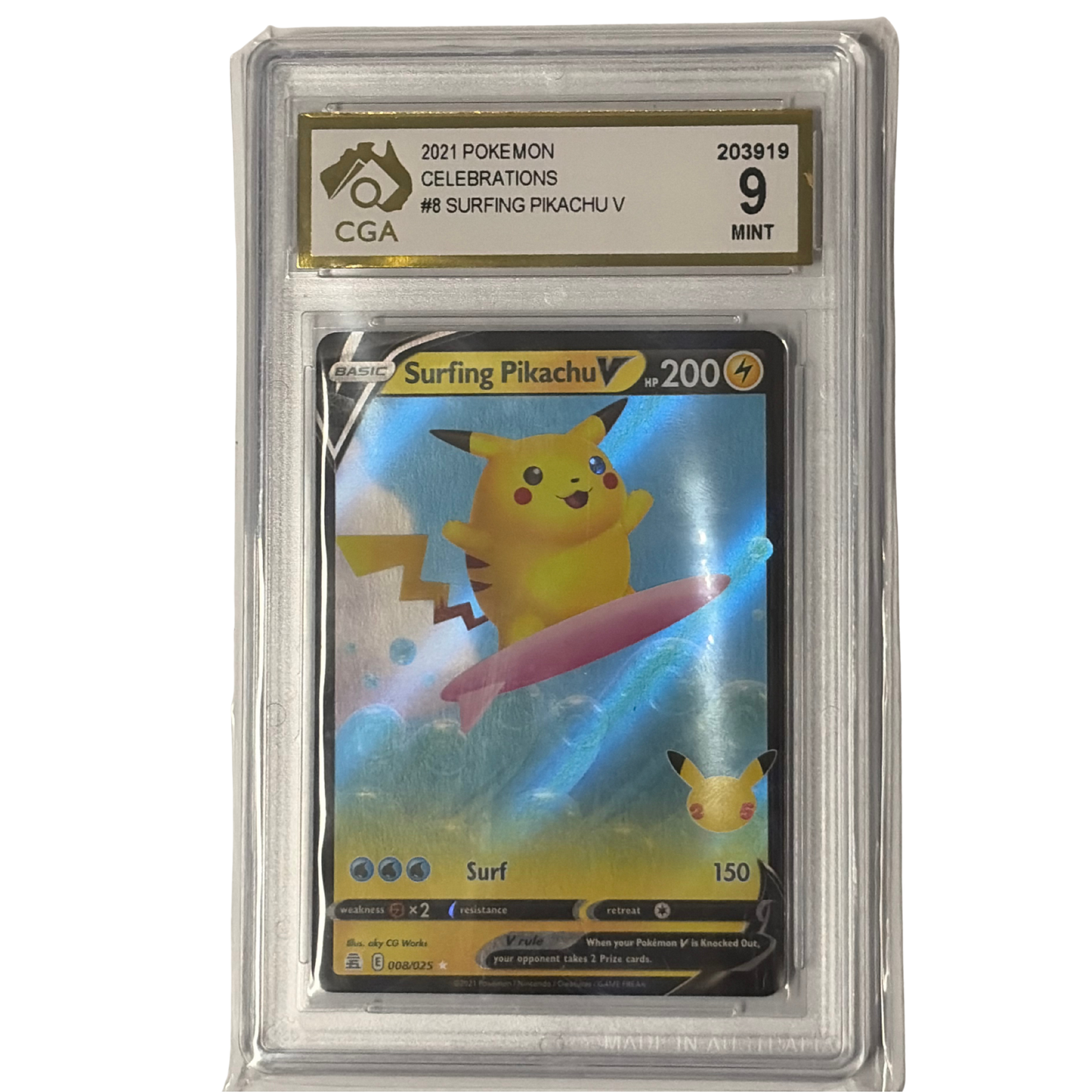 CGA Graded Pokemon Celebrations #8 Surfing Pikachu V - Graded 9