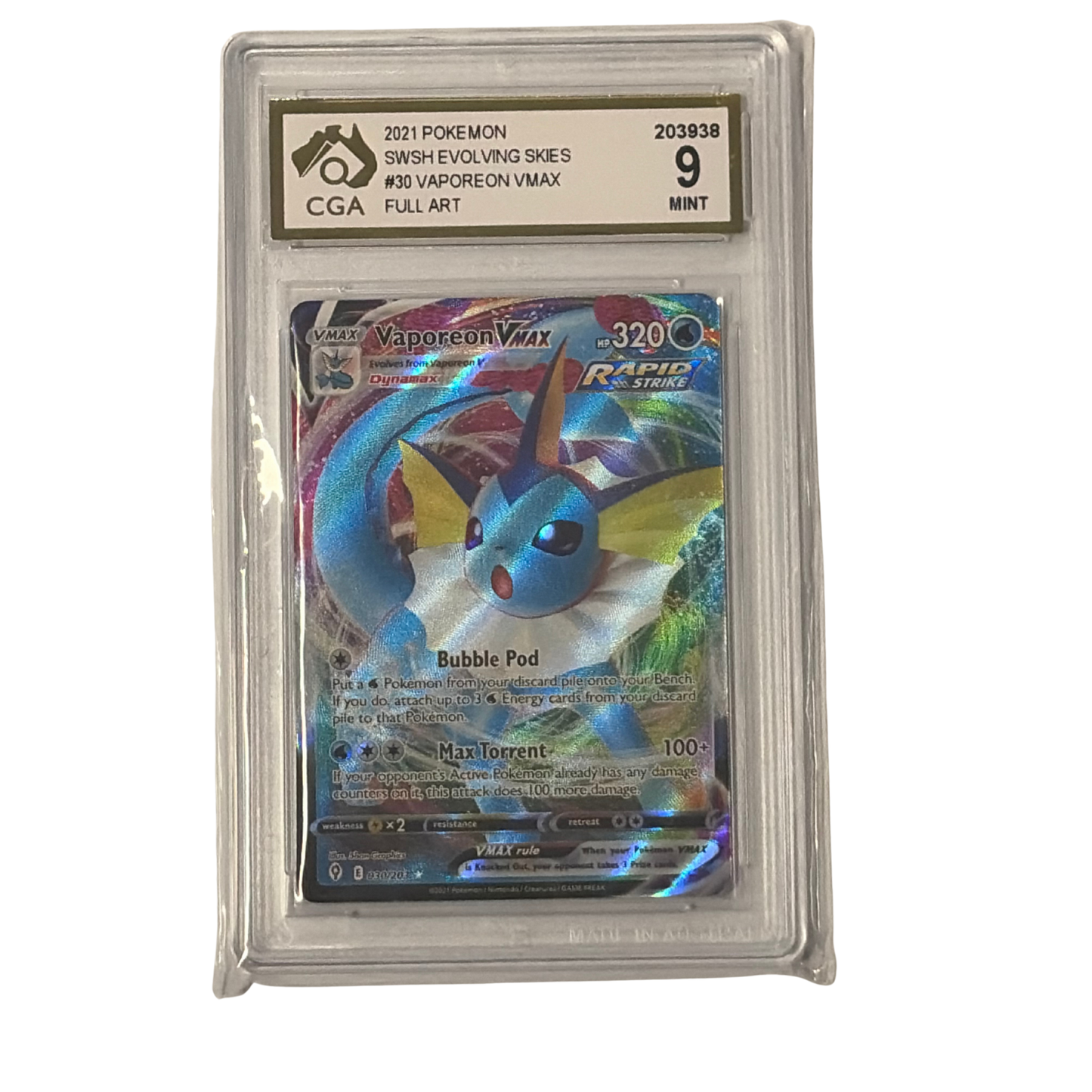 CGA Graded Pokemon Sword & Shield: Evolving Skies #30 Vaporeon VMAX - Graded 9