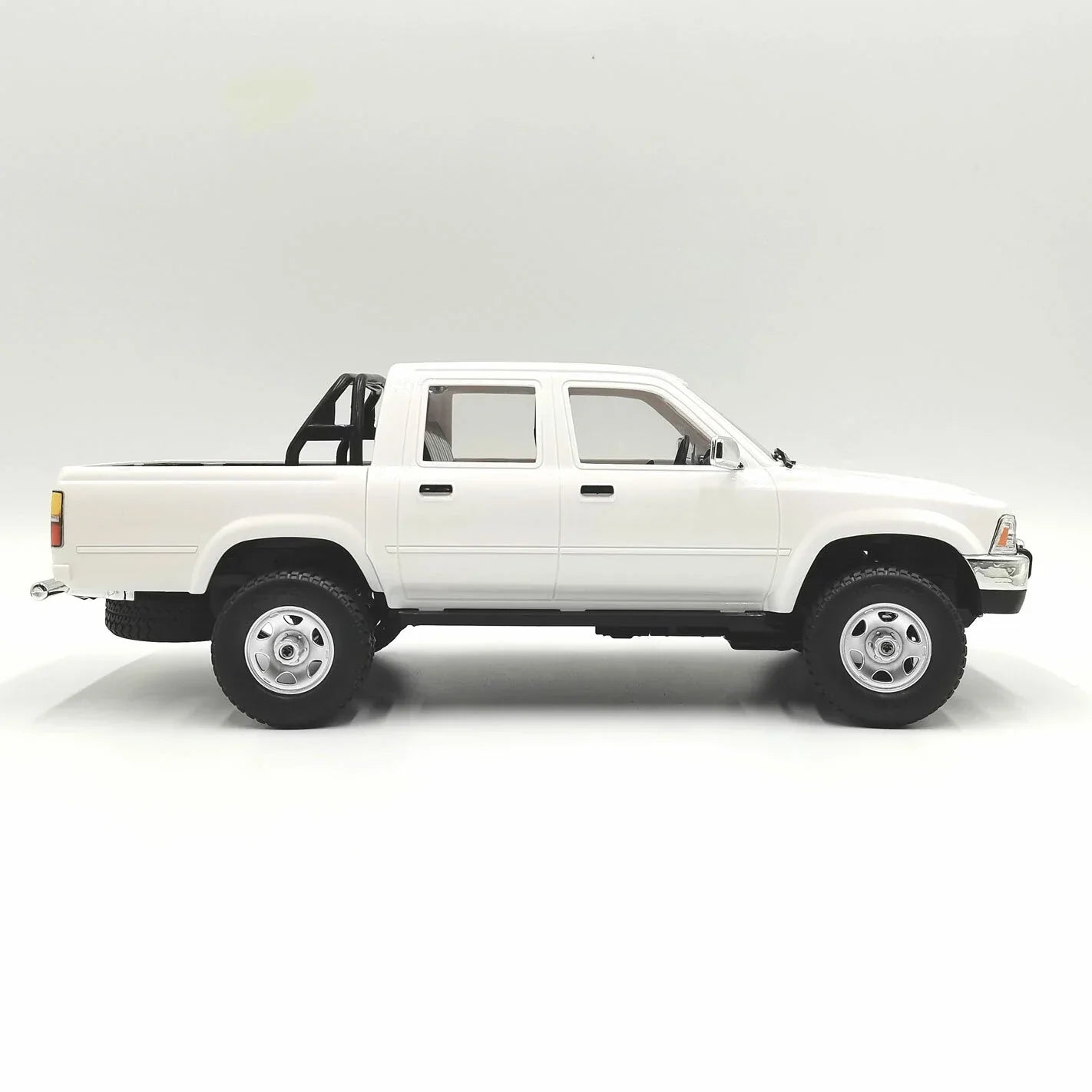 ●New D62 twin cab hard body with interior ●Independent Front Suspension + Rear Leaf Spring Solid Axle ●Metal Rear Locked Diff ●New receiver with light function! ●Reinforced front lower arm mounting with metal plate: ●Revised D chassis in Black