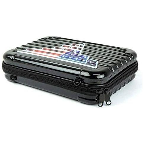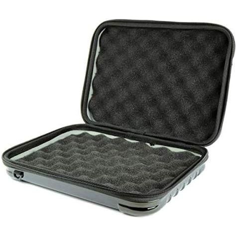 - Rectangular shape multi-tool case The interior is cushioned and is sized to fit medium-sized handguns. The zipper on the three sides allows it to be opened wide, and the exterior is made of resin for a lightweight finish.