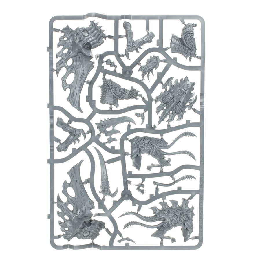 This multipart plastic kit builds a Norn Emissary, a psychic monster tailored to overcome all resistance. Stood atop a ruined structure covered in Tyranid growths, the Emissary shreds all opposition with massive scything talons and cruel, dextrous claws, its visible brain tissue suffused with unnatural power. The Norn Emissary stands amongst the larger creatures in the Tyranids range, towering above even a Hive Tyrant – it's an excellent centrepiece model, loaded with alien detail to show off your painting skills. The kit also includes two different lower torsos, allowing you to pose your Emissary surveying the battlefield or leering down at its prey.