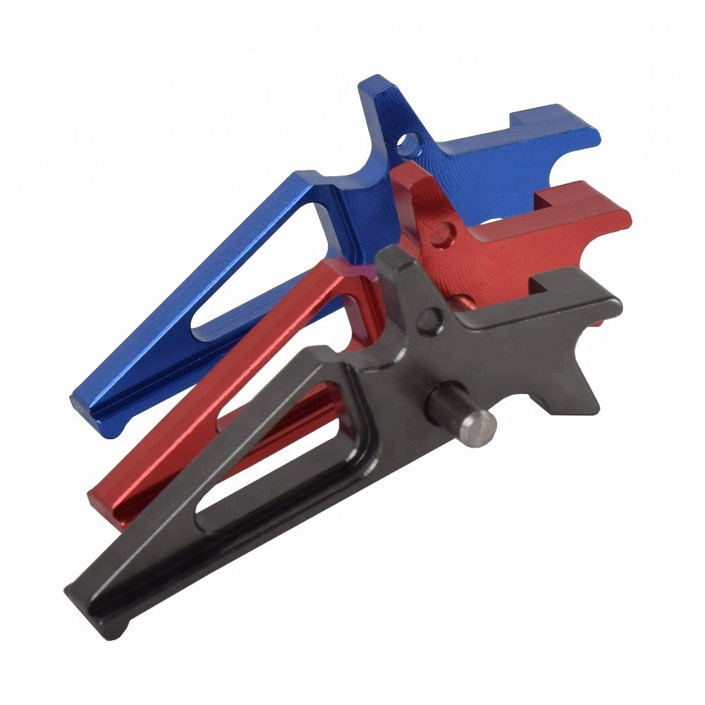CNC Aluminum Trigger Trigger is made for all gearboxes running a mosfet Available in 6 different colours Crafted with precision and durability in mind, this trigger is a great addition for airsoft enthusiasts looking to enhance their play experience.