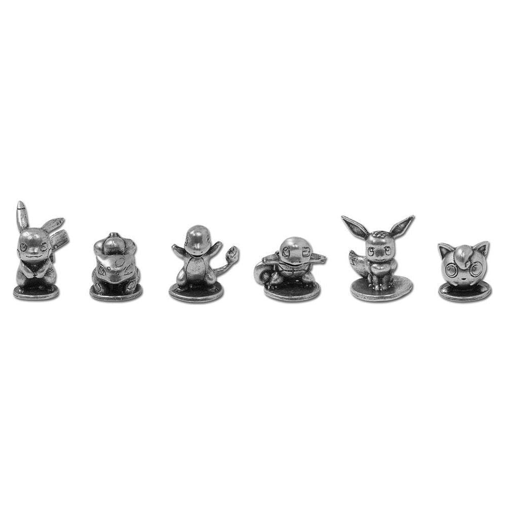 6 Collectible metal tokens: Pikachu, Bulbasaur, Charmander, Squirtle, Eevee, Jigglypuff
