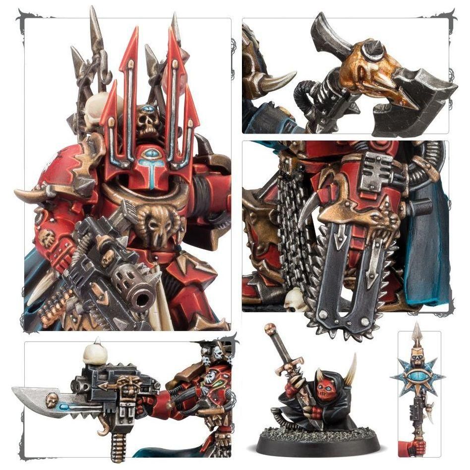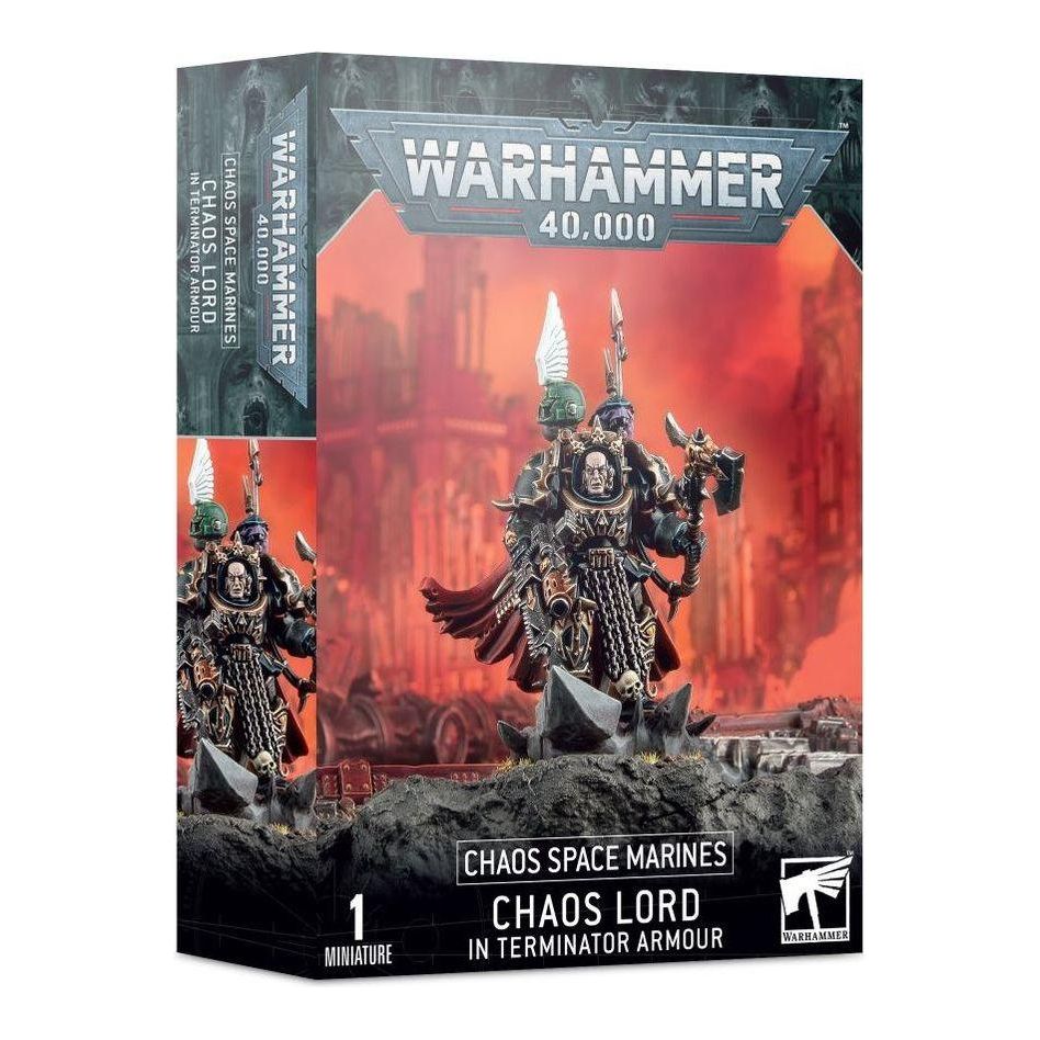 This boxed set contains 1 multi-part plastic Chaos Space Marines Terminator Lord, and includes options for a Chaos Space marines Terminator Sorcerer, combi-weapons, power weapons and more.
