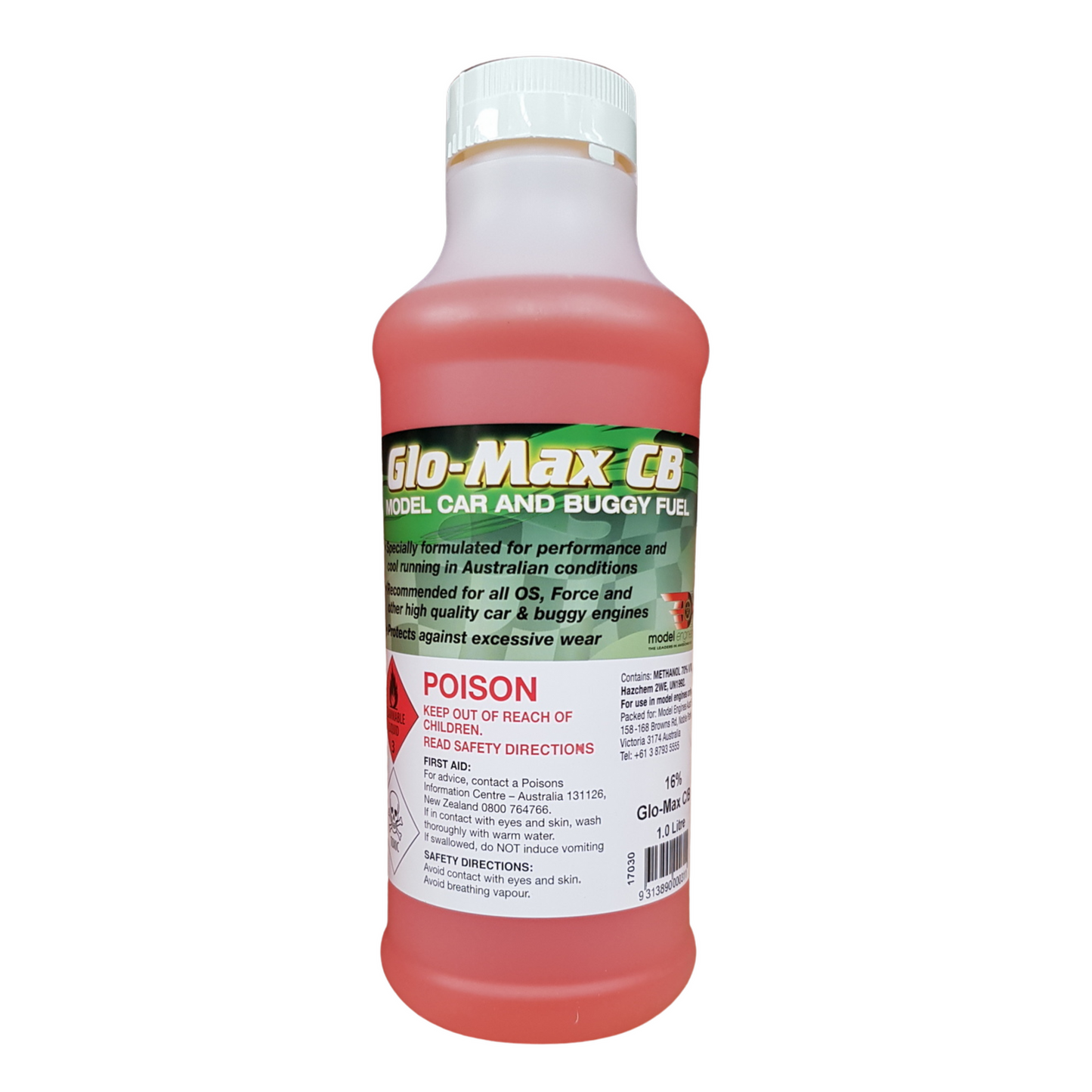 GLO-MAX CB FUEL 20% NITRO 1 LT is a 1-liter bottle of high-quality, ready-to-use nitro fuel designed for radio-controlled (RC) models, containing 20% nitromethane for increased power and performance.