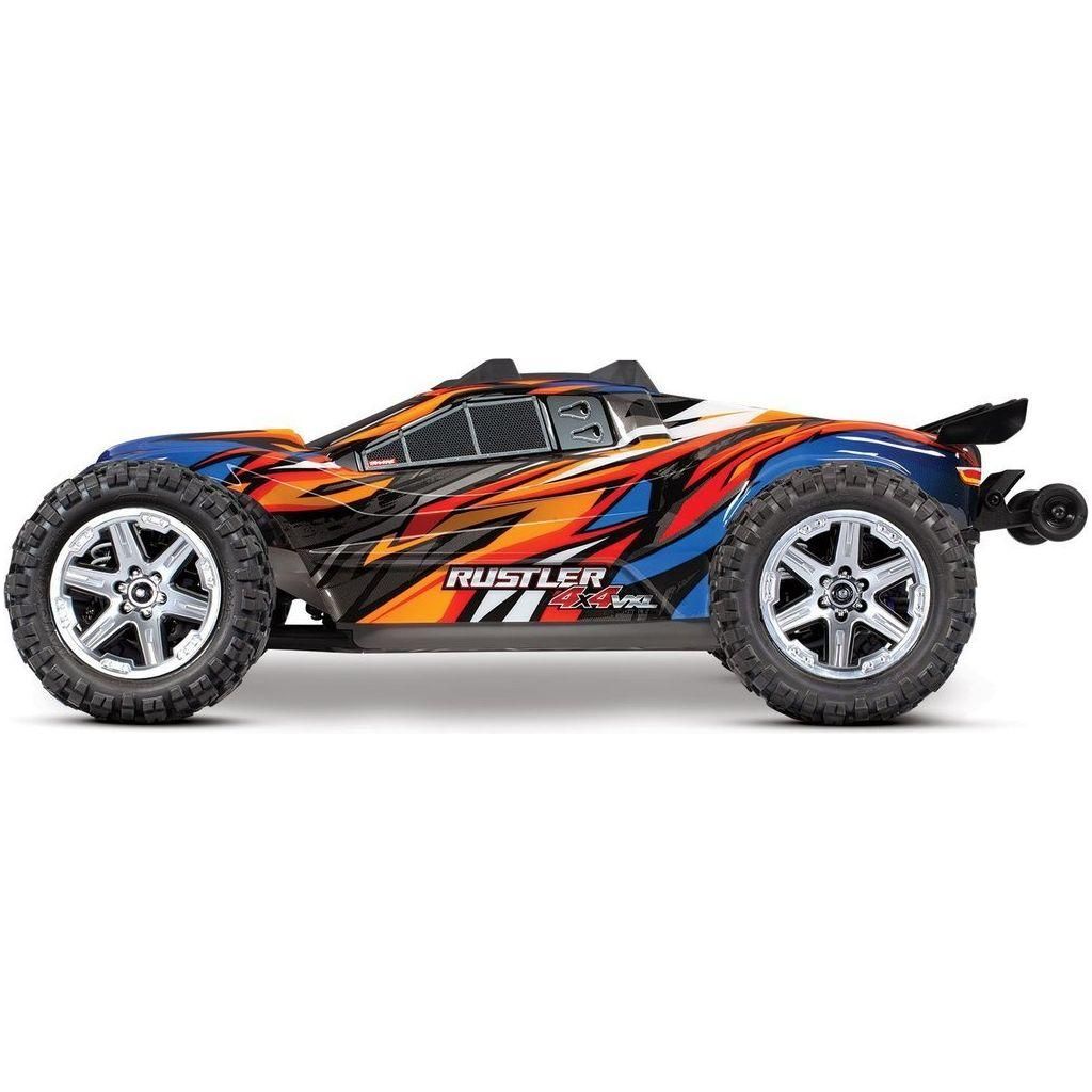 The all-new Rustler® 4X4 VXL is a hard-charging wheelie machine that captures the speed and classic style of the number-one-selling Rustler and injects it with brutal 4-wheel drive performance, increased durability, and even more fun! Bury the throttle and the Rustler 4X4 launches its front wheels skyward as it shreds the ground underneath.
