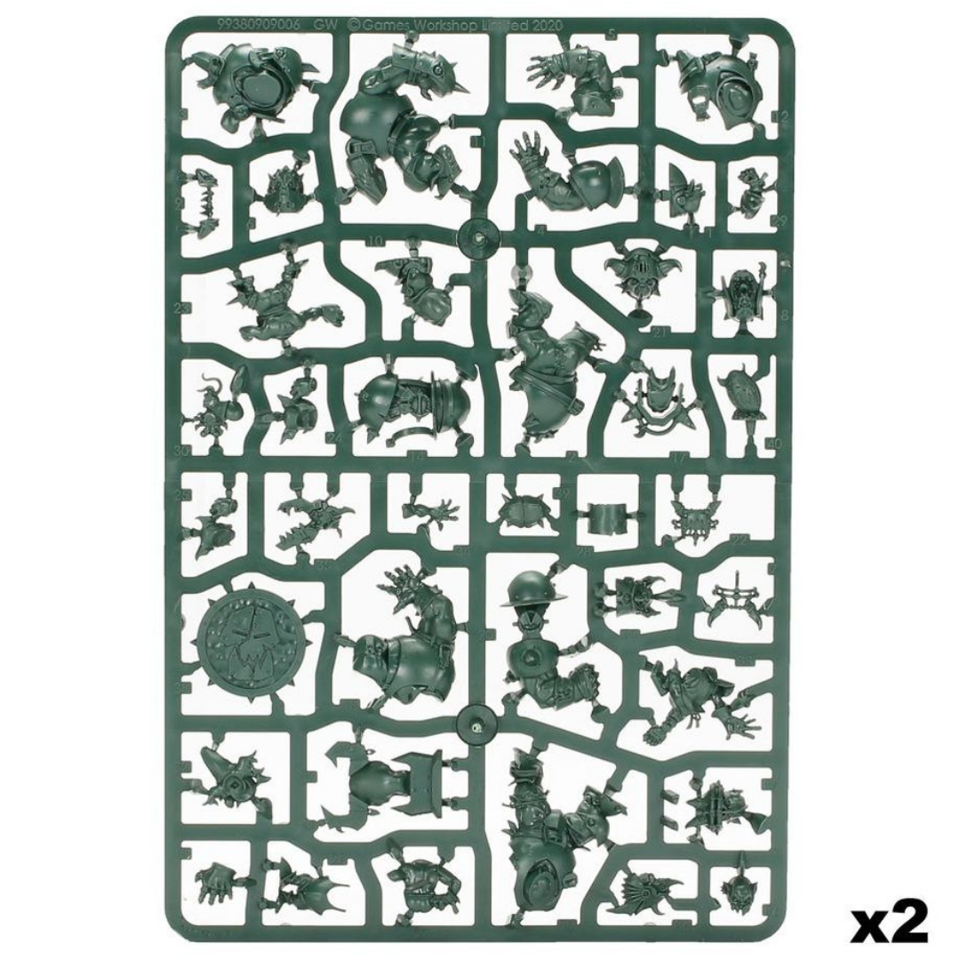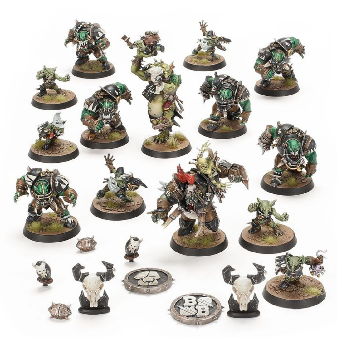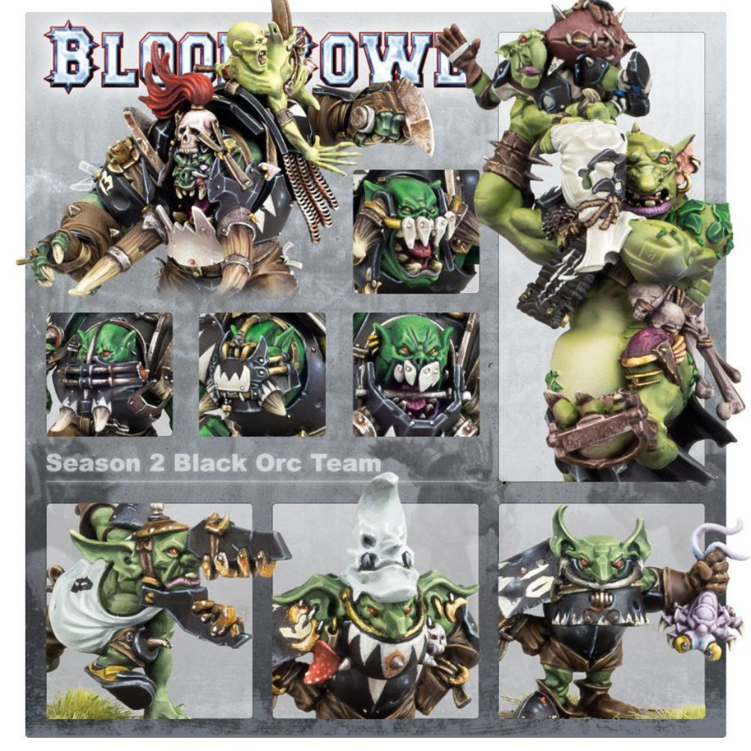 – 12 green plastic Black Orc team players: 6 Goblin Bruiser Linemen, and 6 Black Orcs