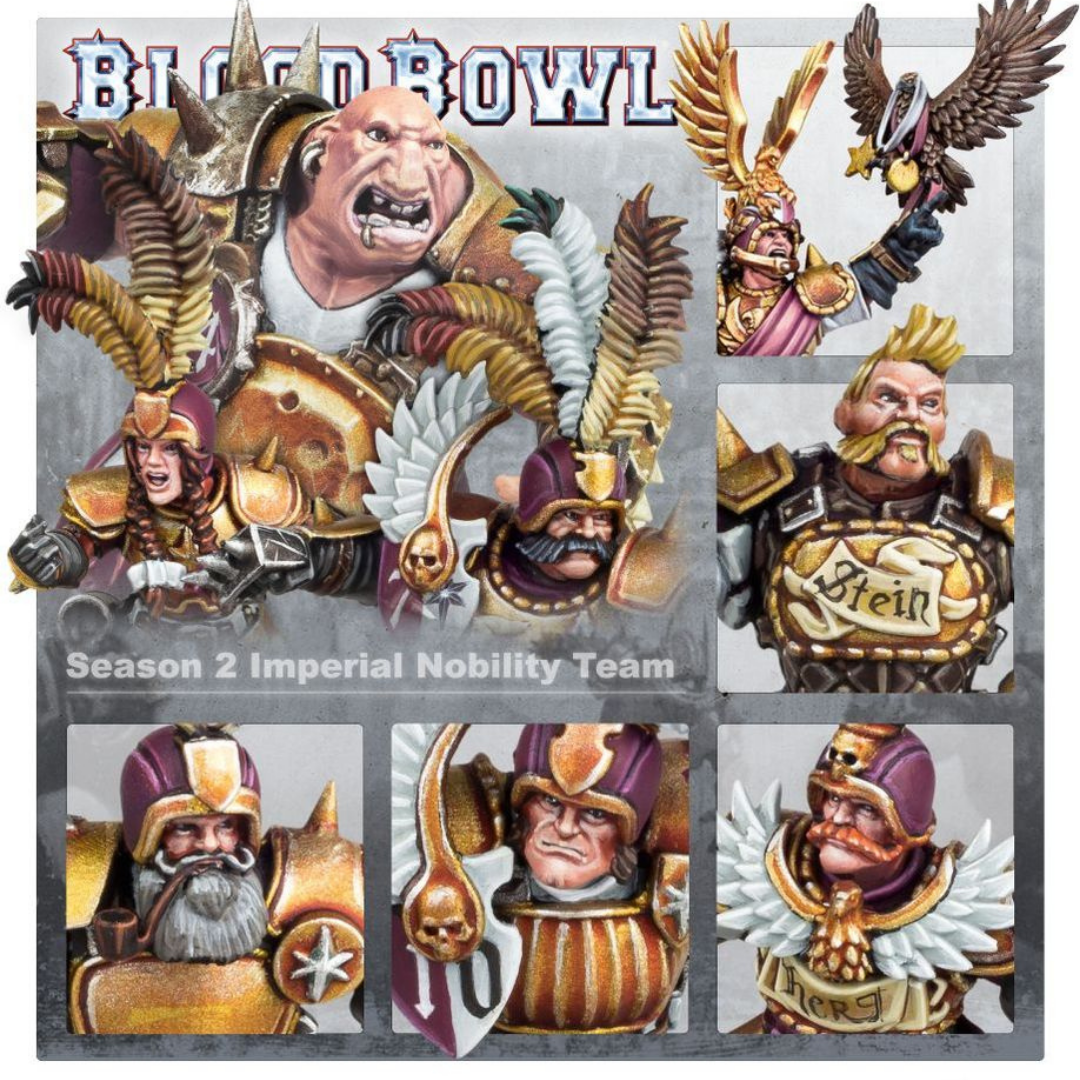 – 12 red plastic Imperial Nobility team players: 4 Imperial Retainer Linemen, 4 Bodyguards, 2 Noble Blitzers, and 2 Imperial Throwers