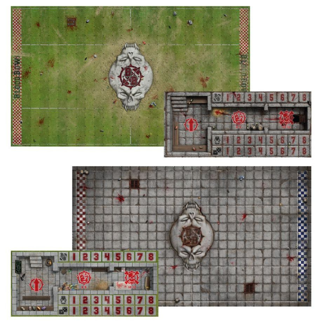 – 1 double-sided fold-out Official Pitch, divided into squares and marked with zones. One side is themed as an Imperial Nobility stadium, and the other for Black Orcs.