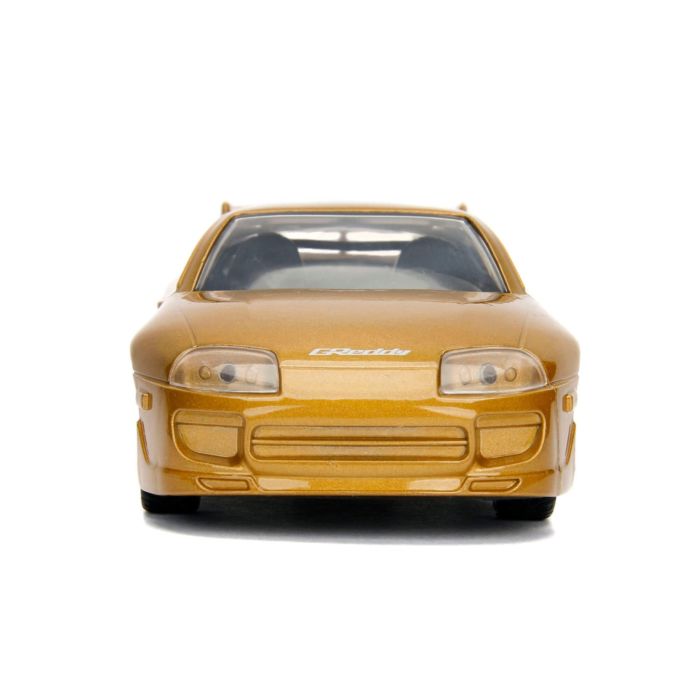 Based on its appearance in 2 Fast 2 Furious, Slap Jack's 1995 Toyota Supra has been created with a die-cast body, opening doors and rubber tyres. The vehicle replica features an eye-catching gold paint job, complete with film-accurate decals. Notice the shiny metallic looking rims, along with the high profile spoiler and detailed body. An iconic JDM car from an iconic street racing film!